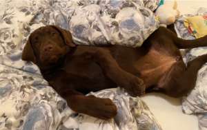 Barna labrador szuka kiskutya